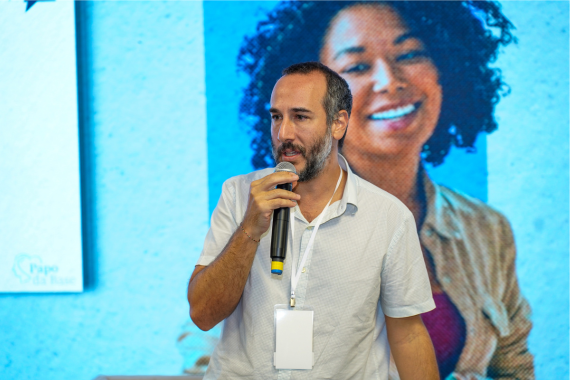 Antonio Bresolin, diretor executivo do Movimento pela Base, durante o Papo da Base 2025, encontro que reuniu redes de diferentes regiões para analisar e qualificar a implementação da BNCC a partir das experiências dos territórios.