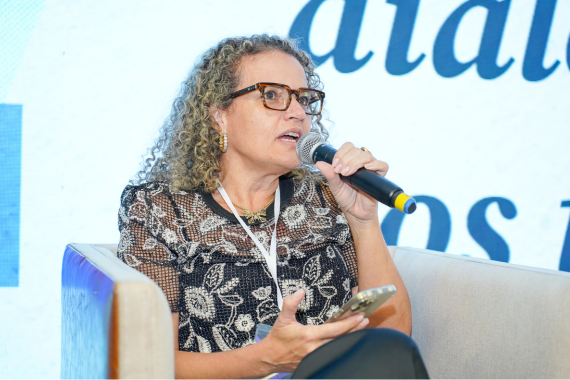 Tereza Farias, coordenadora-geral de Ensino Fundamental do Ministério da Educação, participa da mesa de abertura do Papo da Base 2025, destacando o papel da BNCC como política estruturante e a importância da escuta das redes na consolidação curricular.