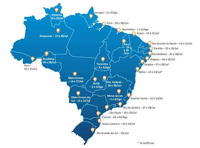 | Mato Grosso do Sul | 12, 13 e 14/7 |